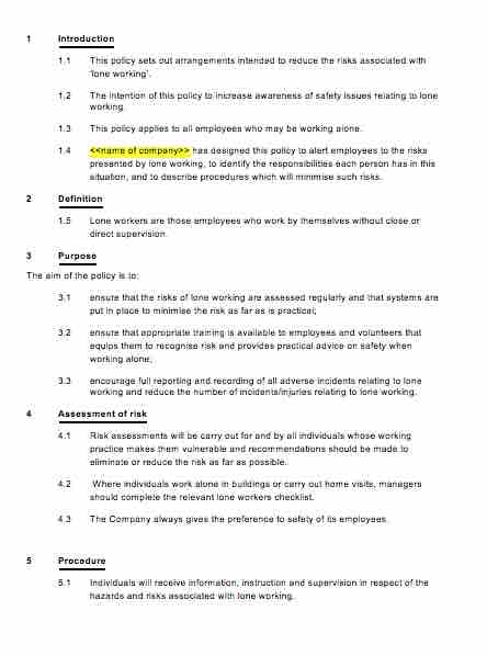 A Health and Safety Policy & Procedures template designed for lone working employees.