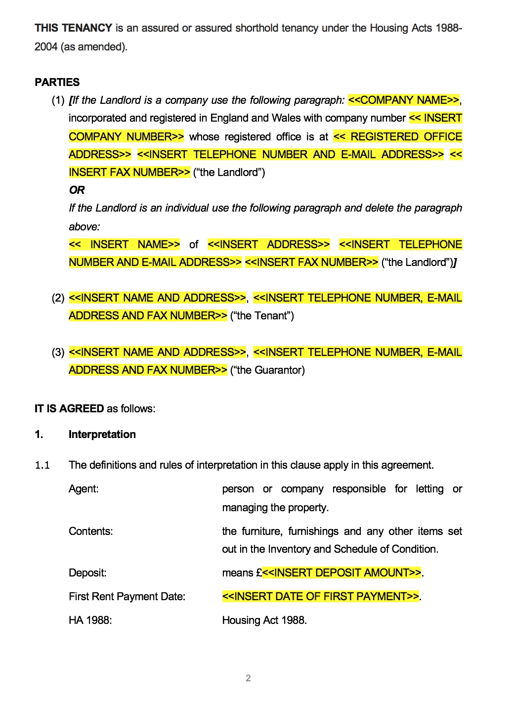 This Assured Shorthold Tenancy Agreement is in Microsoft Word format, written in plain English easy to use and edit. It provides a clear and legally sound structure for renting residential properties, it also contains specific provisions for a Guarantor to provide security to the landlord in the event the tenant defaults its obligation under the agreement.